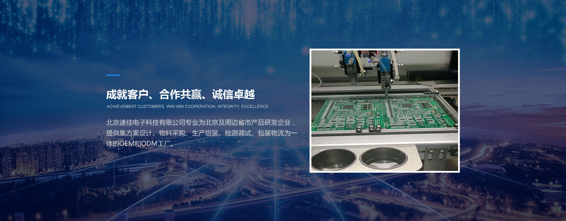 北京速佳電子科技有限公司專業(yè)為北京及周邊省市產品研發(fā)企業(yè),提供集方案設計、物料采購、生產組裝、檢測調試、包裝物流為一體的OEM和ODM工廠。